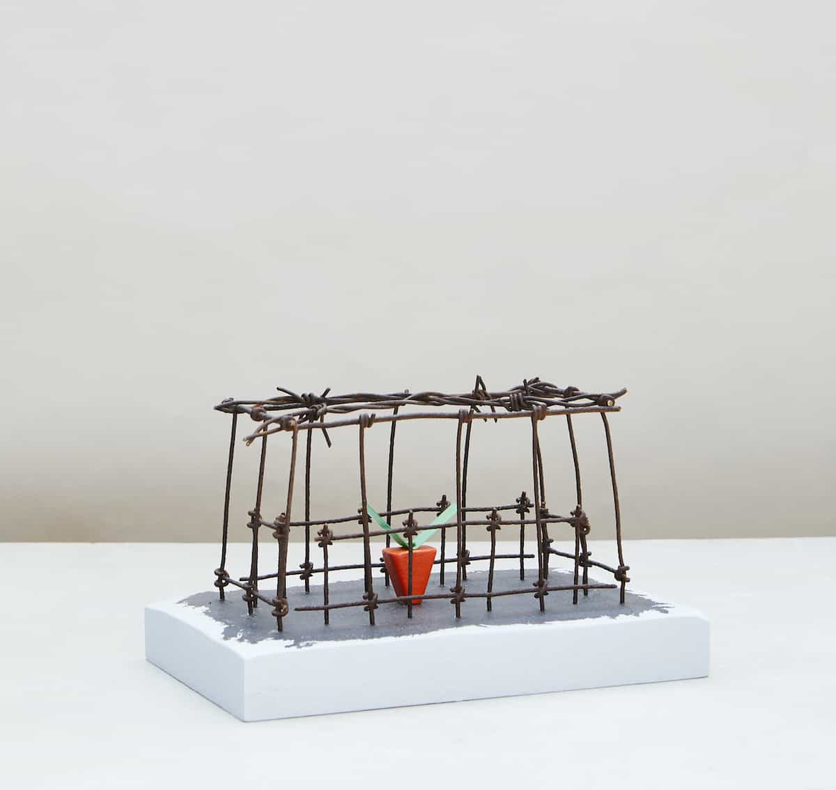 Mr. McGregor comes from a place of childlike, albeit admirable, inquiries of the world: why can’t we just talk it out with our enemies? Why do we need war? The concept blossoms into a scenario from the pages of Beatrix Potter. “Was Mr. McGregor a mean old man?” Andy asks. “Or was Peter Rabbit a freeloader?” The encaged carrot prompts a reconsideration of how we think of our adversaries, and why, perhaps, a little empathy can’t just make them our friends.